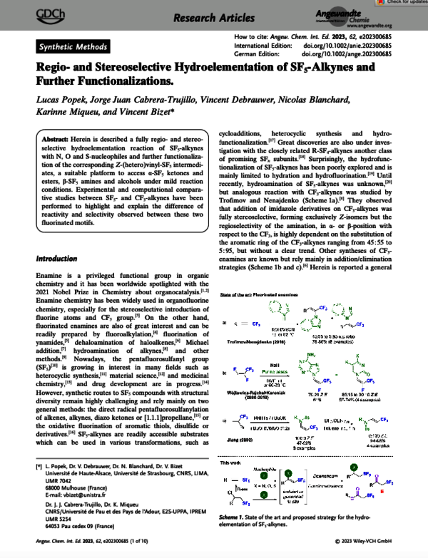 The group's philosophy is to develop new synthetic tools in organic chemistry for applications in both public research and industry. The COHA group focuses on 4 main research axes: Heterochemistry, Synthesis methods and catalysis, Chirality control and Sustainable methods. Our projects can be linked to one or more of the 4 research axes and can be applied to the total synthesis of complex natural products or to the synthesis of functionalized building blocks for materials science.